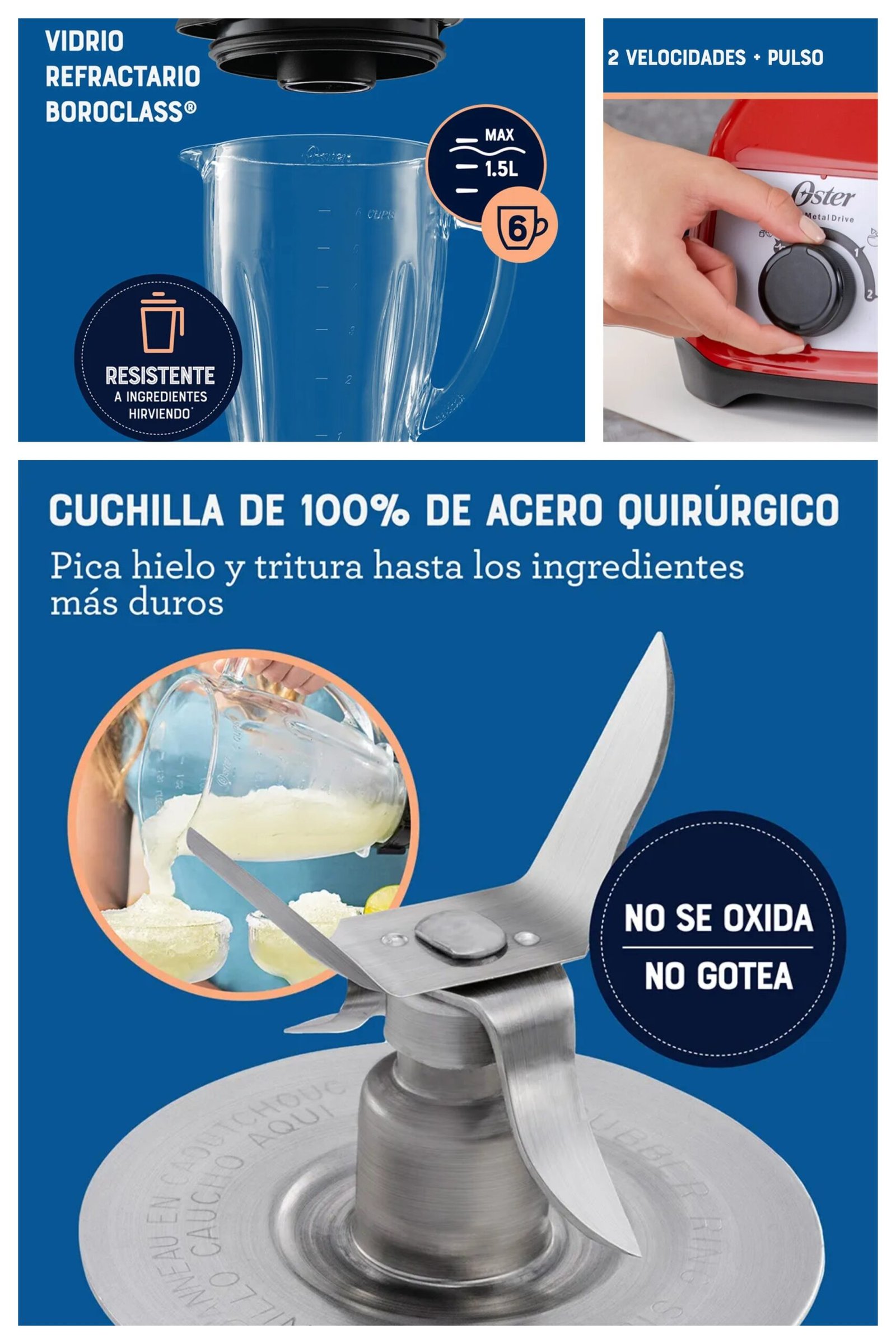 OSTER LICUADORA 3 VELOCIDADES PERILLA CROMADA ROJO 1.25L BLST4126R